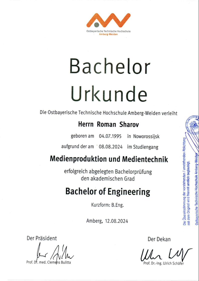 - • Bachelor of Engineer OTH Amberg-Weiden
