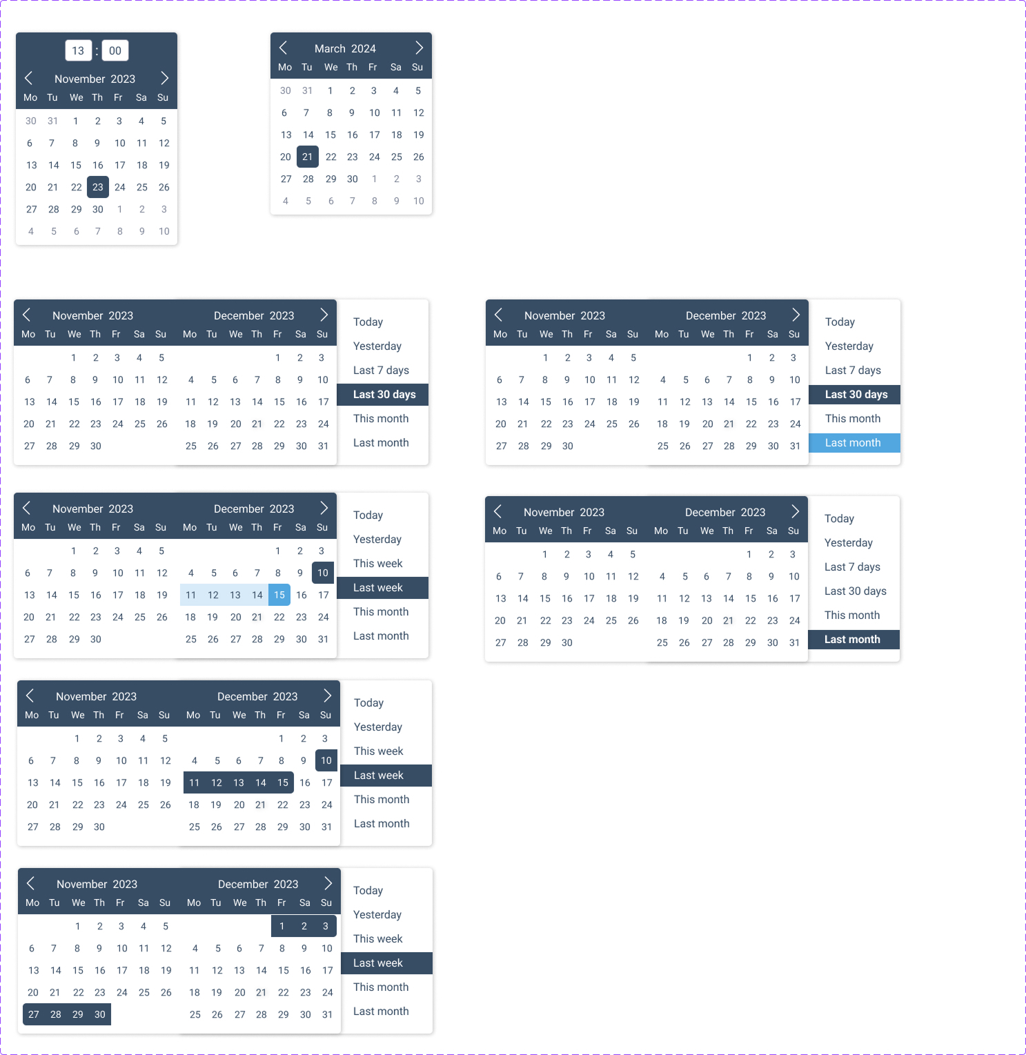 Ein spezieller Kalender wurde für eine Zwei-Monats-Übersicht erstellt, der sowohl zur Angabe und -analysen durch den Administrator verwendet werden kann. Mit dem Kalender kann ein bestimmter Zeitraum für die Ansicht der Benutzeraktivität ausgewählt werden. Zusätzliche Werkzeuge wie ein Schieberegler zur Anpassung des Zeitraums und Filter zur Auswahl der Häufigkeit der Datenanzeige bieten Flexibilität.